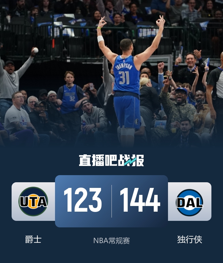 🏀独行侠轻取爵士 克莱26+6 马绍尔22+6+4 森萨博27分