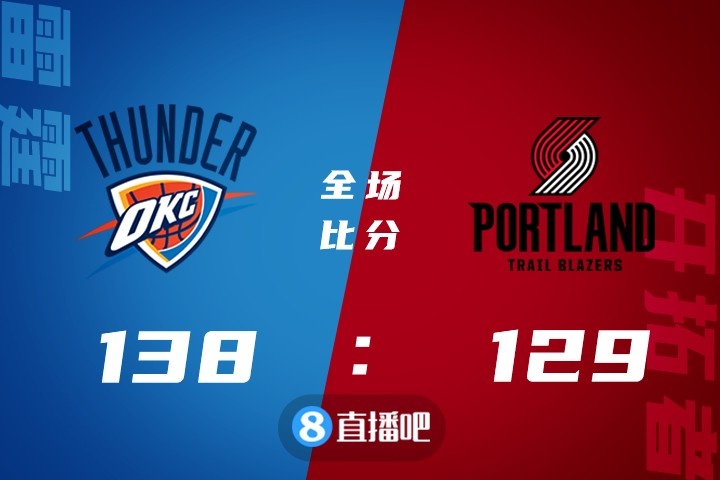 比赛上来,就是亚历山大和利拉德的对飙表演,亚历山大首节6中5独揽16分,而利拉德更是狂砍20分,双方也是打得难解难分,随后雷霆替补席状态都不错能贡献得分,而格兰特也是能给予利拉德支持,比分一直拉不开。下半场,亚历山大和利拉德继续撑起各自球队的进攻,开拓者依靠出色的三分手感保持住微弱领先,末节开拓者上来一波7-0拉开分差,但基迪联手亚历山大里突外投帮助雷霆回应一波16-2超级攻击波再次反超回来,随后雷霆继续发力末节打出33-9的进攻高潮一举将分差拉开至双位数,开拓者无力回天,最终雷霆138-129力克开拓者。
