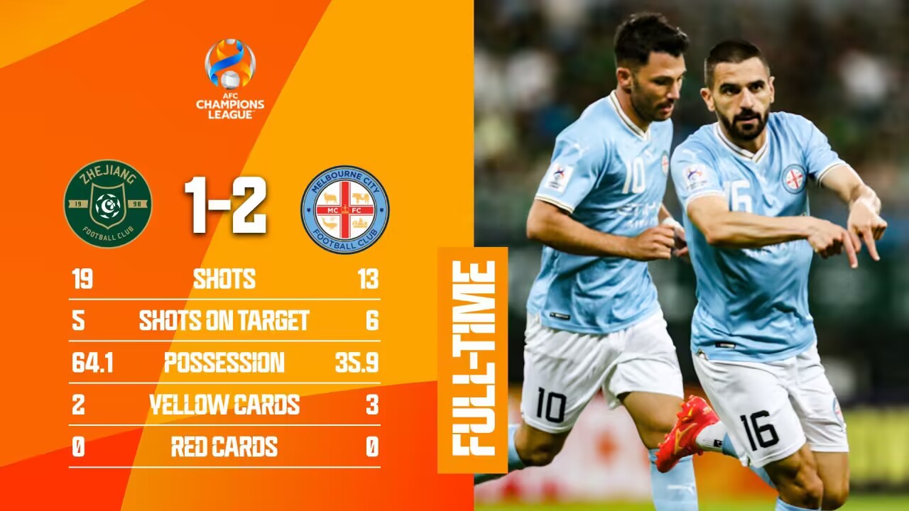 亚冠-浙江队1-2墨尔本城遭开局两连败 莱昂纳多造点+点射