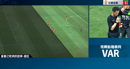 第36分钟,长春亚泰反击机会,谭龙接到历鸿传球,面对韩佳奇选择挑射,这球打进但主裁判响哨示意越位,VAR介入,确认进球谭龙越位,进球无效。↓