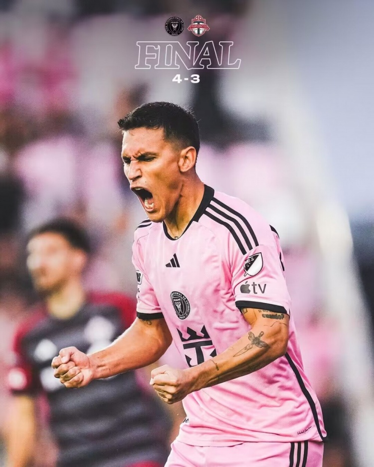 下半场补时4分钟,迈阿密国际4-3多伦多。