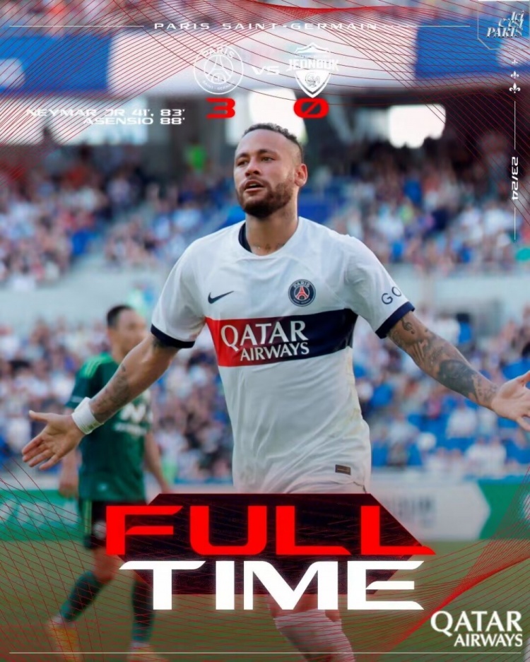 友谊赛-内马尔双响阿森西奥替补建功 巴黎3-0全北现代