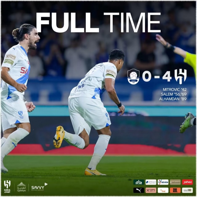 利雅得新月出场阵容:37-布努、66-阿卜杜勒哈米德(92’2-布莱克)、70-贾法里、5-布莱希、12-沙赫拉尼(92’16-纳塞尔-达乌萨里)、8-鲁本-内维斯(92’43-穆萨卜-朱维尔)、22-米林科维奇、29-萨勒姆-达瓦萨里、96-迈克尔(79’28-穆罕默德-卡努)、77-马尔科姆、9-米特洛维奇(79’14-哈姆丹)
