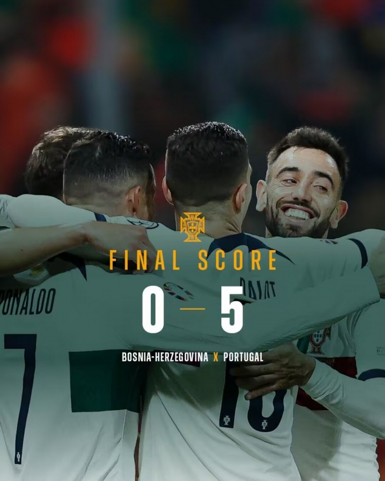 欧预赛-葡萄牙5-0波黑八战全胜锁J组头名 C罗连场双响B费传射