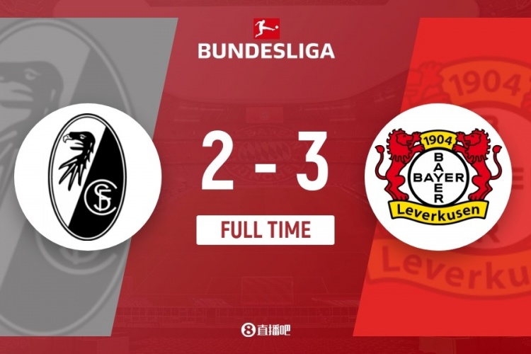 伤停补时4分钟。全场比赛结束,勒沃库森3-2弗赖堡。