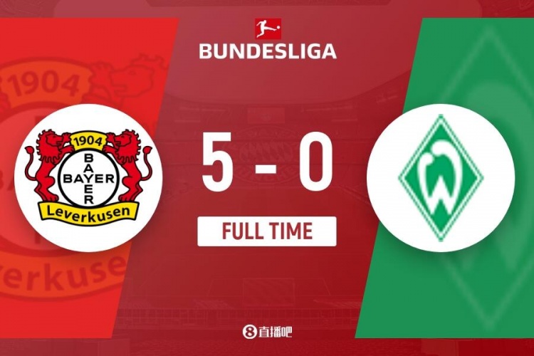 全场比赛结束,勒沃库森5-0击败不莱梅,提前5轮夺得德甲冠军。