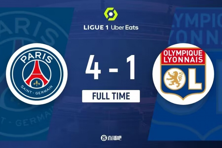 下半场伤停补时2分钟,全场比赛结束,最终巴黎4-1里昂。