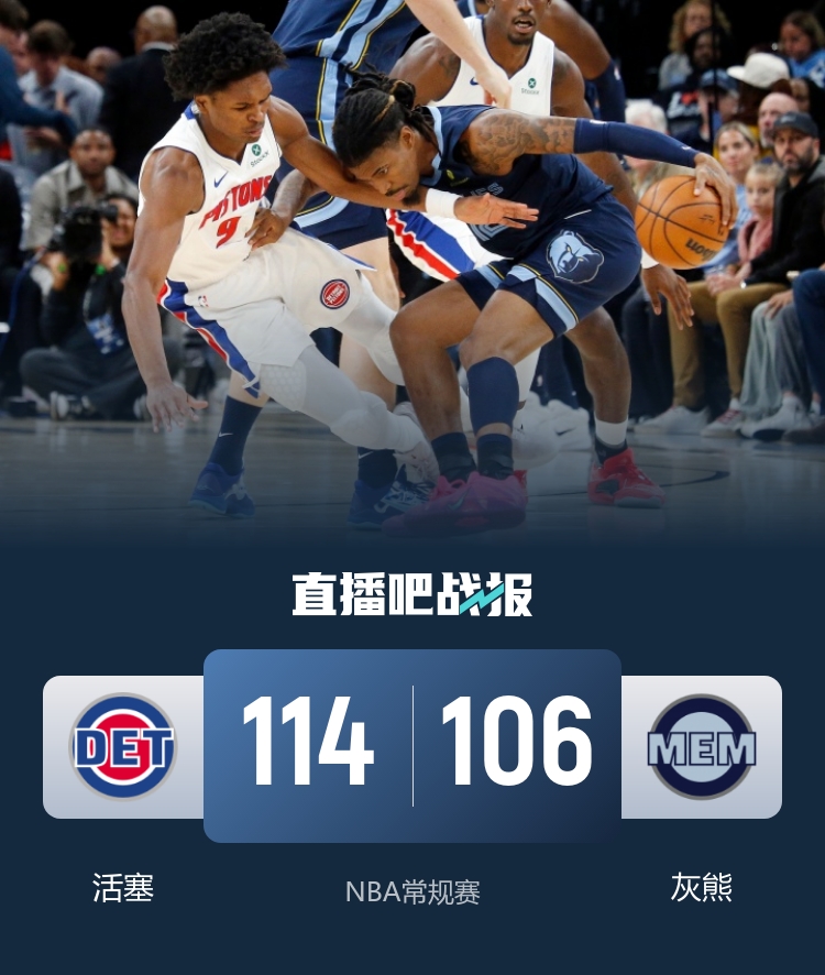 🏀活塞轻取灰熊迎3连胜 CC33+5+8 斯图尔特24+14 莫兰特18+6+10