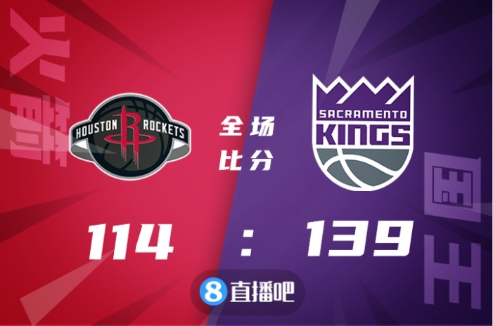 比赛开始,双方势均力敌,比分交替领先,杰伦-格林手感回暖单节拿到13分,蒙克三分三连击强势回应,国王持续发力取得优势,格林利用个人能力带队迫近比分,半场战罢火箭66-69落后3分。易边再战,双方继续缠斗,火箭突然断电,国王连投带罚打出17-4的进攻高潮一度将分差拉开到20分,末节双方发生冲突,蒙克、马修斯、梅图、伊森4人均被驱逐,但国王火力不减,连中三分早早杀死悬念。最终,国王139-114再胜火箭,取得3连胜。
