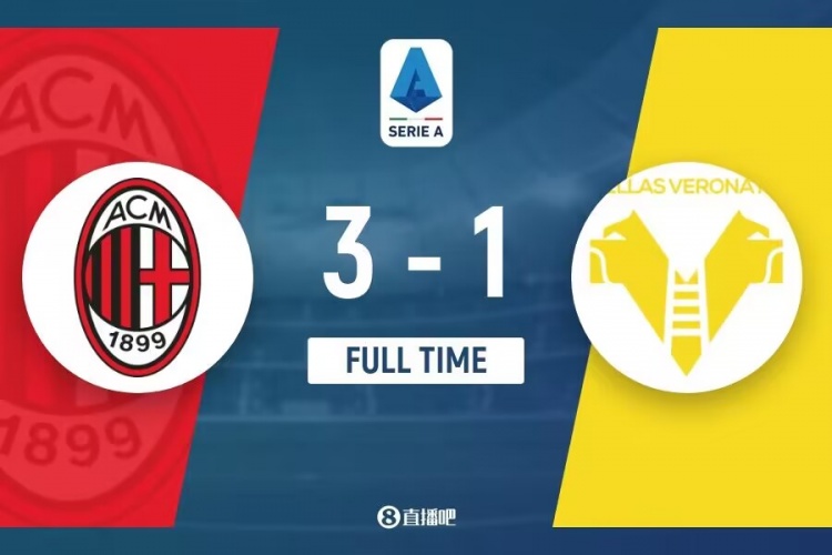 下半场伤停补时6分钟,全场比赛结束,最终AC米兰2-1维罗纳。
