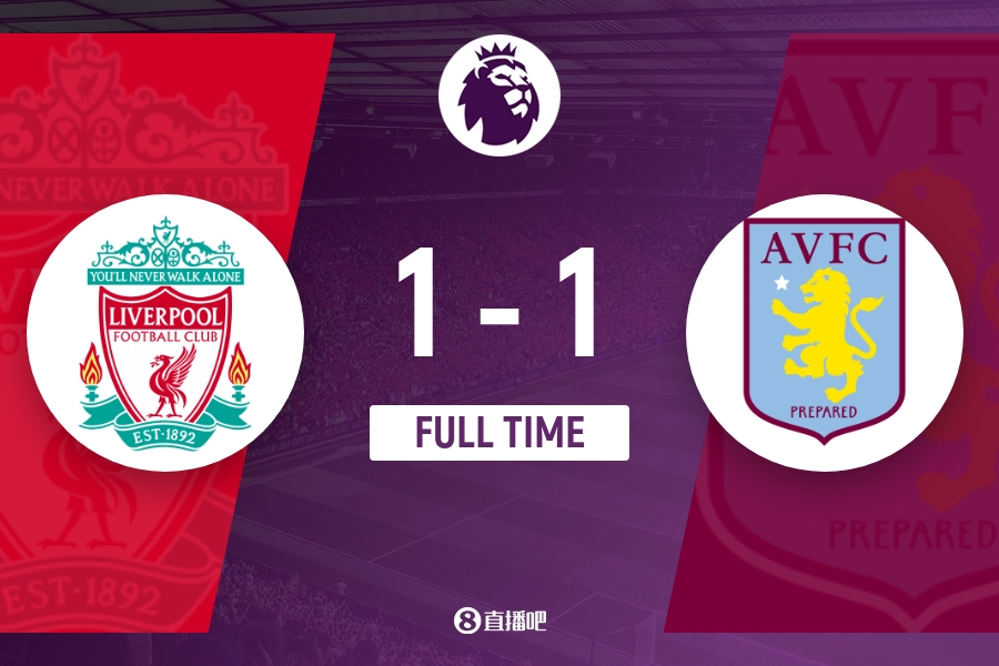 全场比赛结束,利物浦1-1战平维拉。