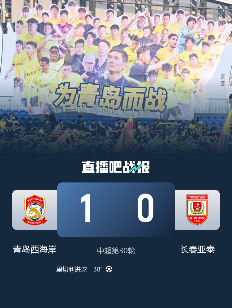 第38分钟,陈柏良助攻里切利破门!青岛西海岸暂1-0长春亚泰↓