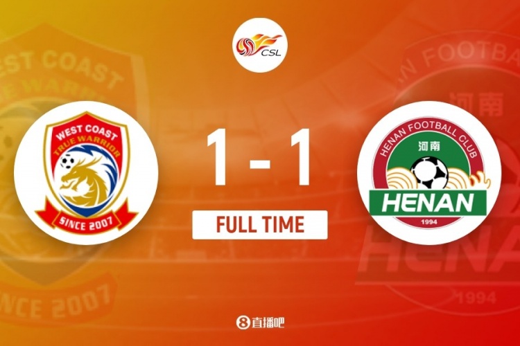 伤停补时9分钟。全场比赛结束,青岛西海岸1-1河南。