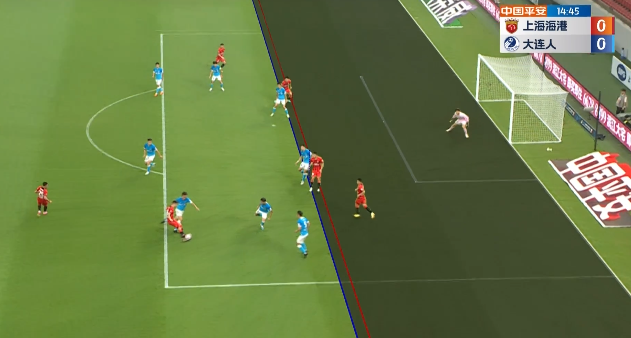第12分钟,奥斯卡斜传后点,吴龑挡出海港第一脚射门,后续李帅补射得分,但边裁举旗示意此球也是越位在先进球无效↓