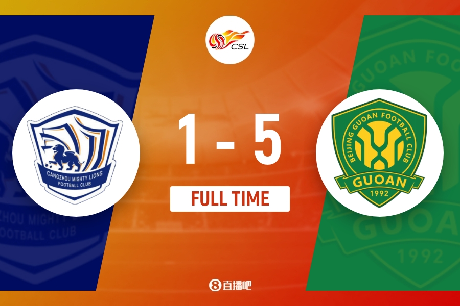 下半场伤停补时2分钟,全场比赛结束,最终北京国安5-1沧州雄狮。