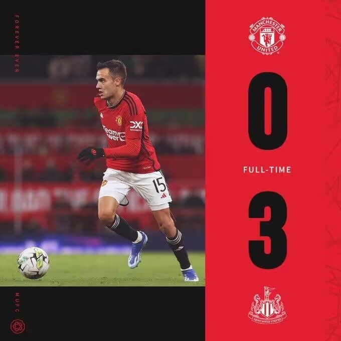 11月2日讯 联赛杯第4轮,曼联主场对阵纽卡。上半场,塔格特开场1分钟伤退,加纳乔失误被断阿尔米隆借机反击破门,霍尔建功。易边再战,阿姆拉巴特也是出现失误致丢球,威洛克再下一城。最终曼联0-3纽卡止步联赛杯16强,在输给同城死敌曼城后再次以同样比分不敌纽卡,吃到主场的两连败。