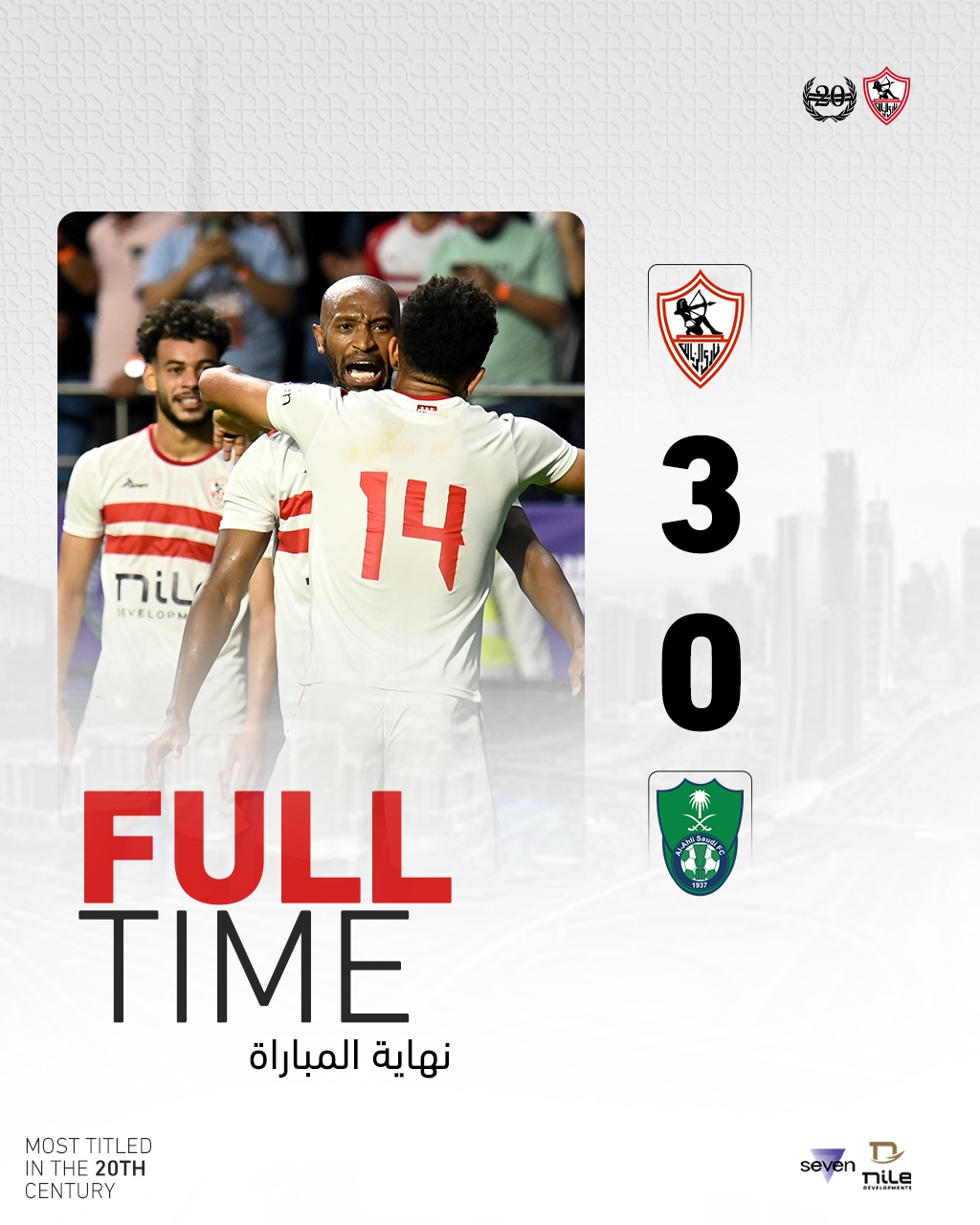 迪拜杯-扎马雷克3-0十人吉达国民夺冠 扎马雷克3次射正进3球