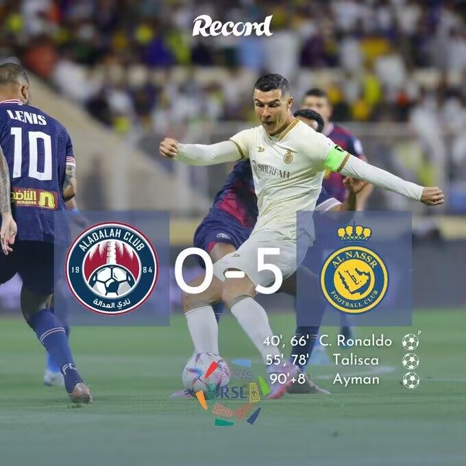 沙特联-C罗连续三场双响塔利斯卡两射一传 利雅得胜利5-0哈萨正义