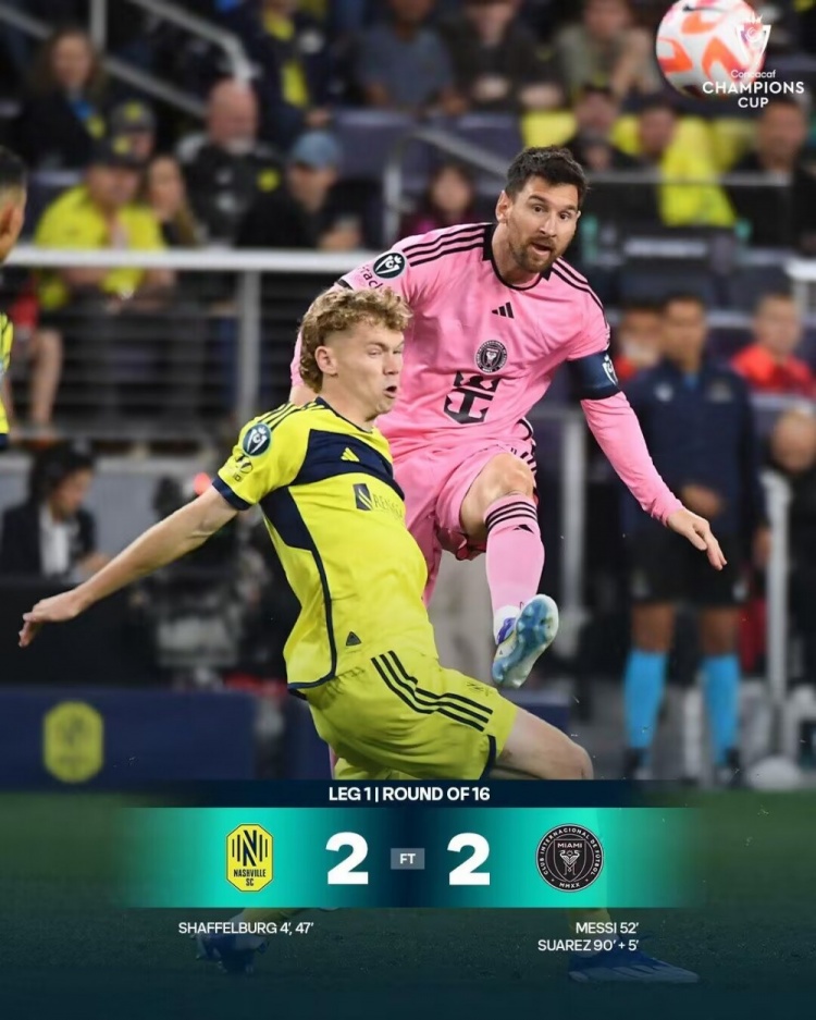 全场比赛结束,纳什维尔2-2迈阿密国际。