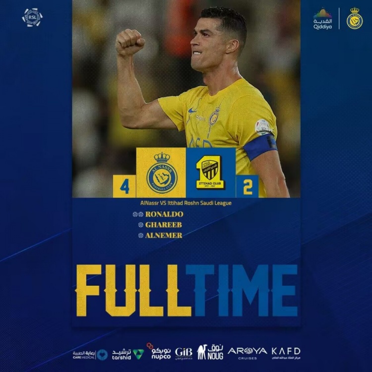 沙特联收官-胜利4-2吉达联合82分收官 C罗双响35球破沙特联纪录