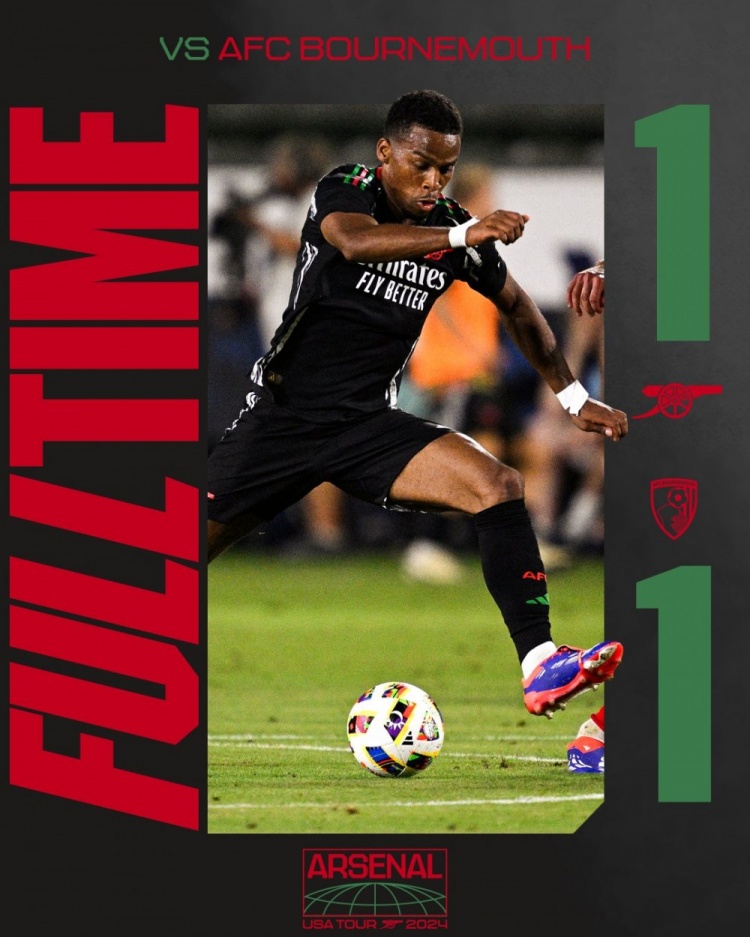 下半场没有补时,阿森纳1-1伯恩茅斯。